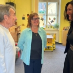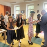 V dopoledních hodinách uvítala skupina žáků v historických krojích vzácnou návštěvu-pana starostu města Mgr. Ing. Michala Kozára MBA v doprovodu 2. místostarosty Ing. Bohumila Komínka, PhDr. Jany Burianové, vedoucí odboru školství Mgr. Leony Šímové a ředitelů základních škol našeho města. Mezi vzácnými hosty byli i bývalí ředitelé naší školy pan Josef Hanuš a Josef Brabec PaedDr. Po zahájení setkání si naše návštěva prohlédla školu a neodmítla pohoštění v školní kuchyňce připravené žáky školy.