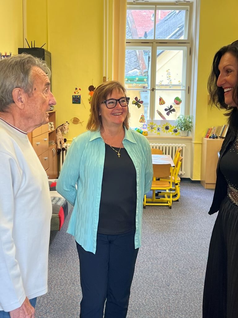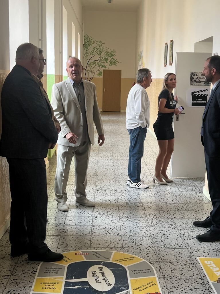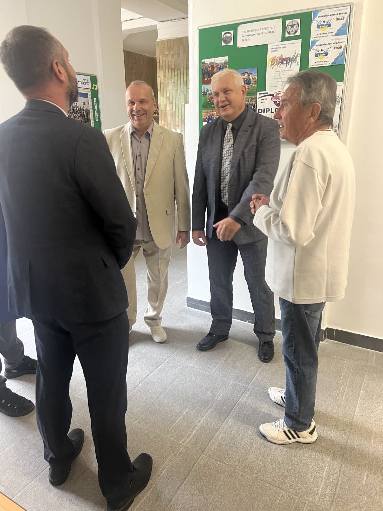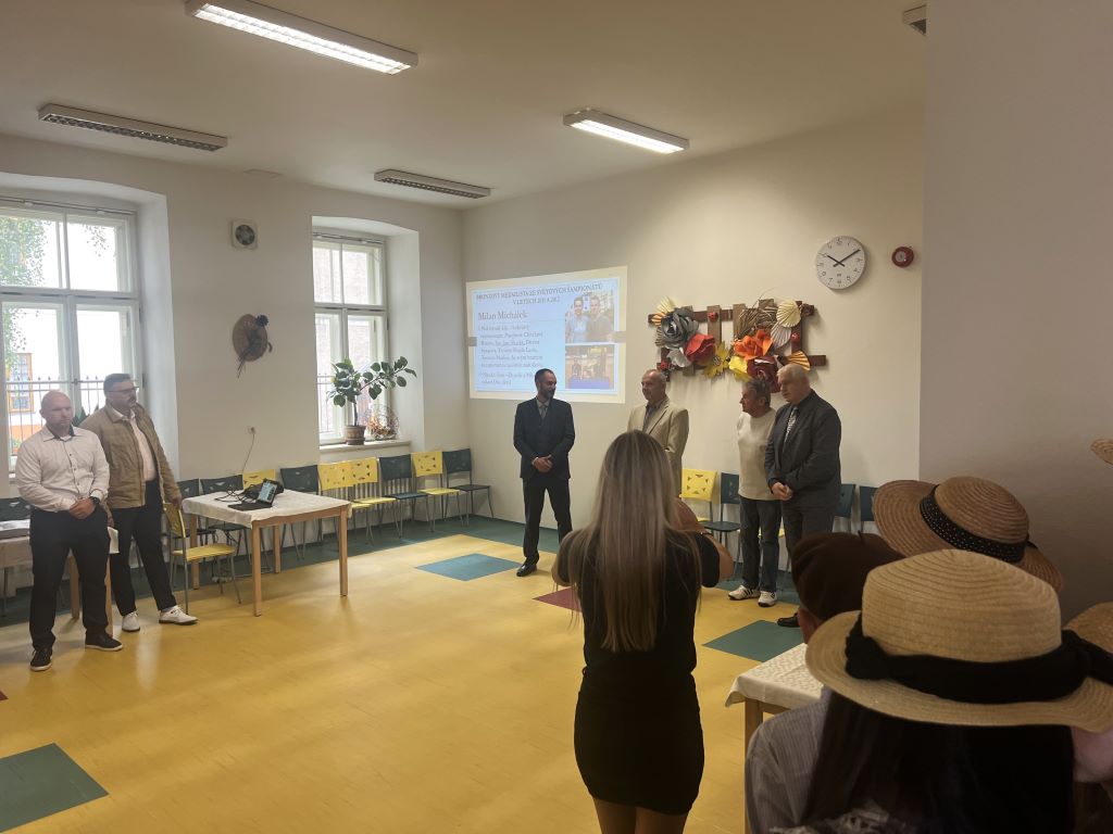 V dopoledních hodinách uvítala skupina žáků v historických krojích vzácnou návštěvu-pana starostu města Mgr. Ing. Michala Kozára MBA v doprovodu 2. místostarosty Ing. Bohumila Komínka, PhDr. Jany Burianové, vedoucí odboru školství Mgr. Leony Šímové a ředitelů základních škol našeho města. Mezi vzácnými hosty byli i bývalí ředitelé naší školy pan Josef Hanuš a Josef Brabec PaedDr. Po zahájení setkání si naše návštěva prohlédla školu a neodmítla pohoštění v školní kuchyňce připravené žáky školy.