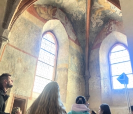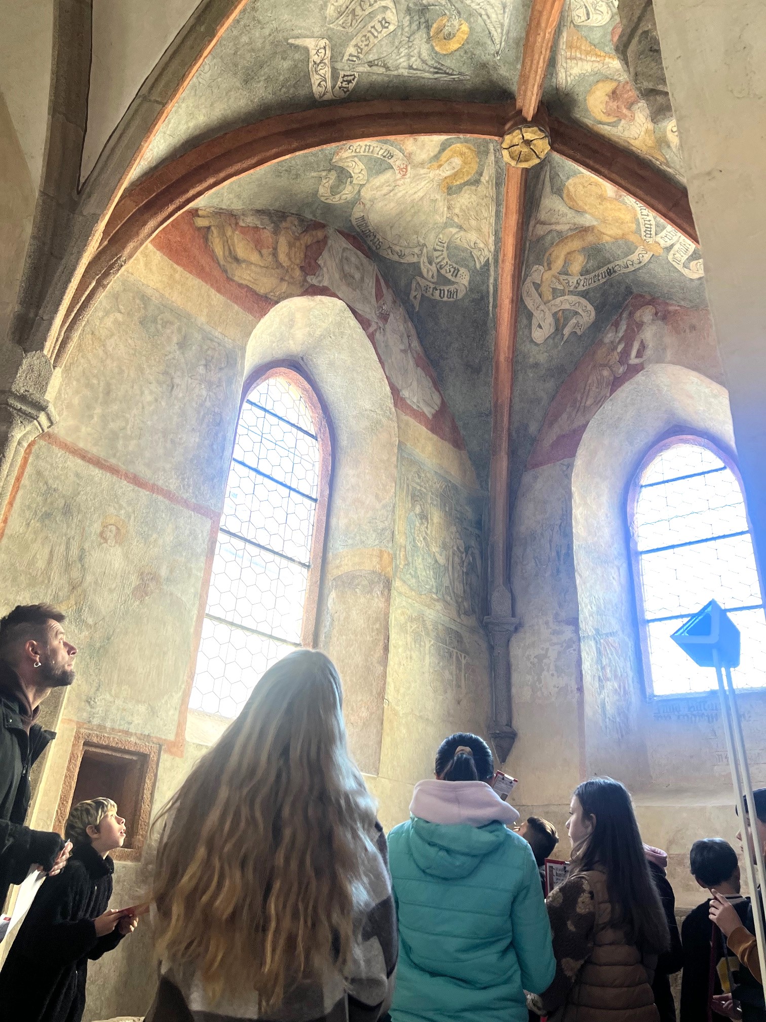 5. A využila nabídky edukačních programů našeho Muzea v Jindřichově Hradci a navštívila kostel sv. Jana Křtitele s odbornou přednáškou pana Valáška o historii záhadných maleb kostela. Celá akce byla velmi dobře připravena, za což pracovníkům muzea děkujeme.
