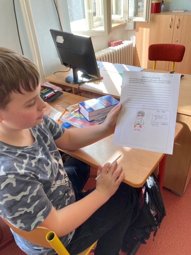Že Vaše babička neumí jazyky? Další mýtus! Týden knihy se promítl i do anglického a německého jazyka. V anglickém jazyce se žáci 6. – 8. ročníků věnovali četbě a překladu vybraných kapitol z knihy „Gangsta Granny“.  Žáci 9. ročníku vytvářeli informační leták o autorovi a knize Davida Walliamse. V hodinách německého jazyka si 9. ročníky vyzkoušely překlad vybrané kapitoly Wasser mit Kohlgeschmack z německého předkladu „Gangsta Oma“, zajímavé bylo porovnat německý překlad s českým překladem knihy a připomenout si tak prvky uměleckého překladu.