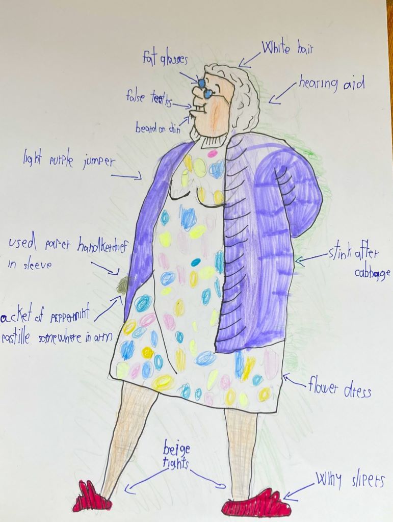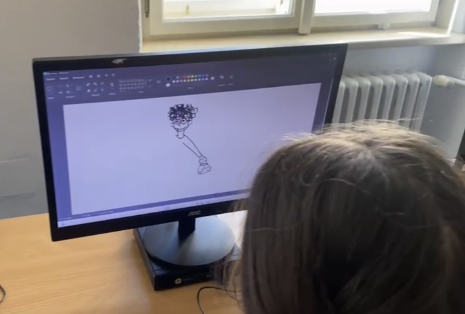 Žáci 5. a 6. ročníků se kreativně zapojili do digitálního kreslení. Každý žák si vytvořil vlastní ilustraci Babičky drsňačky, přičemž využíval základní nástroje pro kresbu a editaci. Nakreslená podoba Babičky drsňačky následně posloužila i v hodinách matematiky. Žáci pracovali s vytištěným obrázkem, kde byla zobrazena pouze jedna polovina babičky. Jejich úkolem bylo pomocí rýsovacích potřeb překreslit druhou polovinu tak, aby byla osově souměrná s původní částí. Správnost svého řešení si mohli ověřit přiložením papíru k oknu, kde prosvícení ukázalo souměrnost obou polovin.