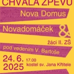 srdečně Vás zveme na koncert Chvála zpěvu v úterý 24. června 2025 v 17 hodin do kostela sv. Jana Křtitele.