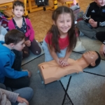 V rámci prvouky si žáci druhých tříd tento týden vyzkoušeli pro život důležité techniky obvazování a masáž srdce pod vedením ředitelky Českého červeného kříže Lenky Kalábové. Ve dvojicích se pokoušeli uvázat trojcípý závěs, pacičku a kravatový obvaz z trojcípého šátku.
