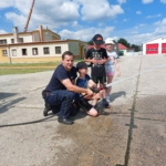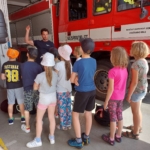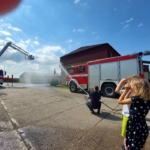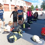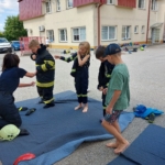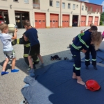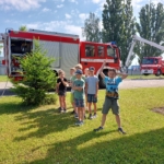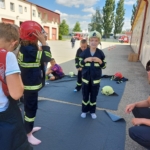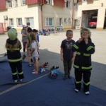 V pátek 17. 6. se vydali druháčci na návštěvu k hasičům. Hned po příchodu se rozdělili do skupinek a postupně si vyzkoušeli různé aktivity, které souvisí s prací hasičů. Děti se seznámily s technikou , kterou hasiči používají, prohlédly si auta a jejich vybavení. Dozvěděly se, že hasiči se musí umět převléct do výstroje za 2 min a samy si vyzkoušely, zda by to také zvládly. A zvládly to na výbornou! Dalším úkolem byla jízda zručnosti na koloběžkách na čas. Největším zážitkem bylo samozřejmě „hašení“ s tlakovou hadicí, které si všichni s nadšením vyzkoušeli. Vzhledem k teplému počasí přišlo vhod i osvěžení stříkající vodou.