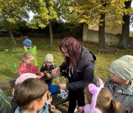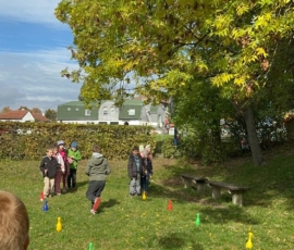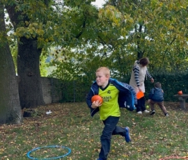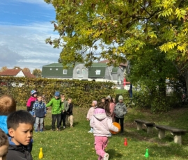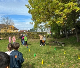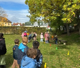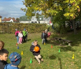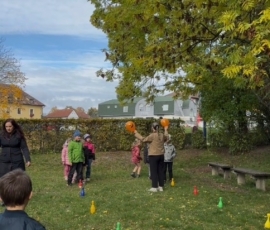 V úterý 14. října uspořádaly paní vychovatelky pro děti ze školní družiny v parku Dýňový běh. Děti soutěžily v družstvech, kde s „dýňovým“ oranžovým balónkem běhaly slalom, skákaly do kruhů a trefovaly se míčkem do oranžového kyblíku. Vše se neslo v duchu podzimu a dýní. Nechyběla ani závěrečná část s přenášením malé dýně do cíle. Akce byla plná pohybu, smíchu a soutěžní atmosféry. Na závěr čekala na všechny odměna v podobě samolepek, sladkostí a drobných figurek. 🎃