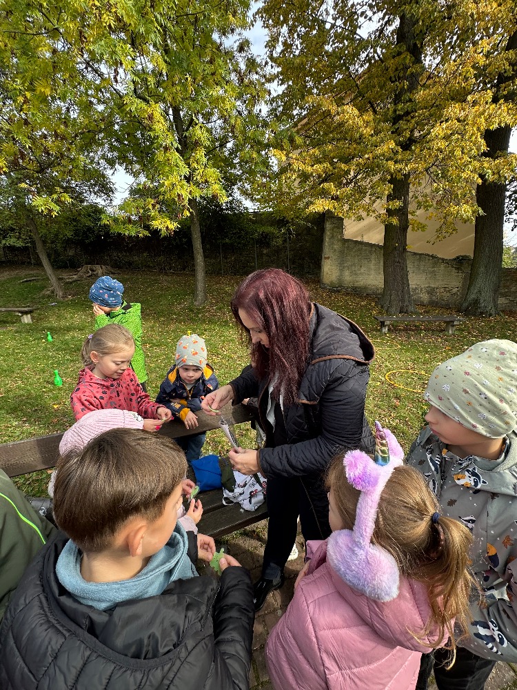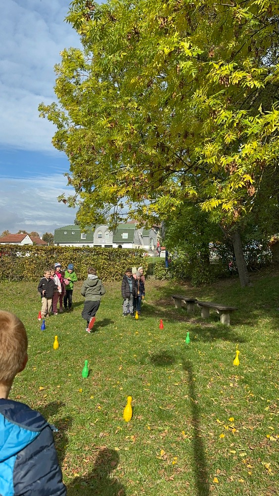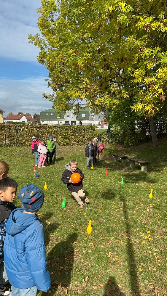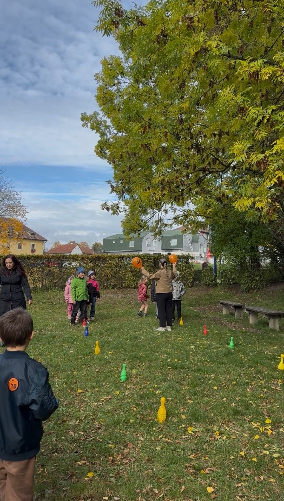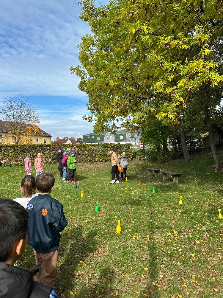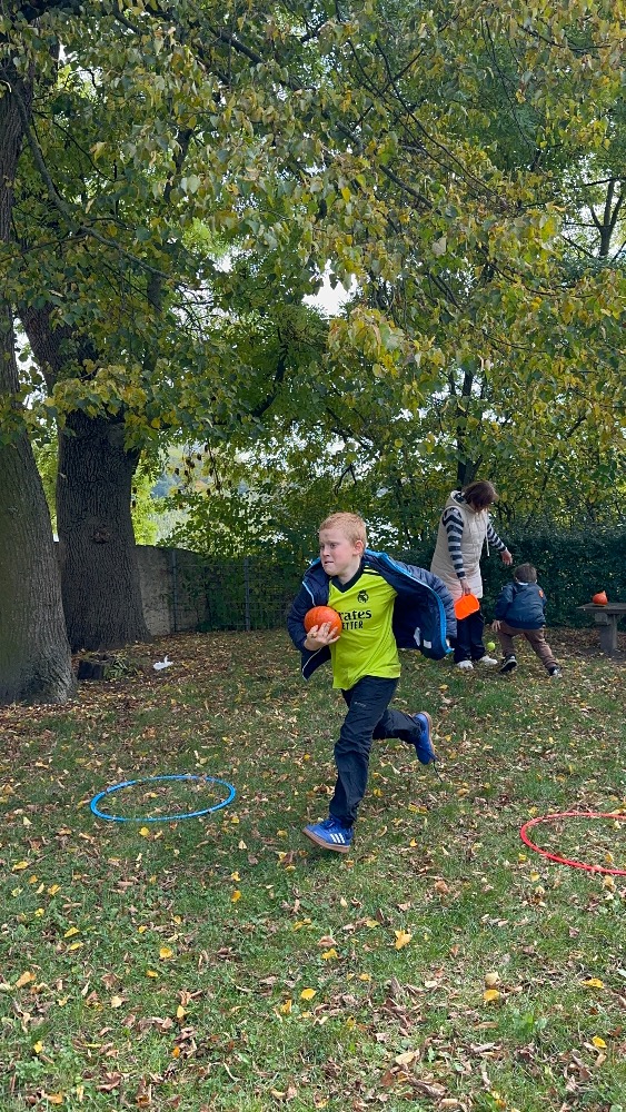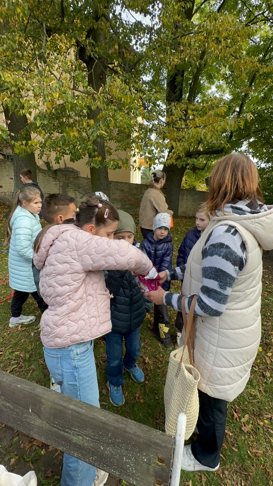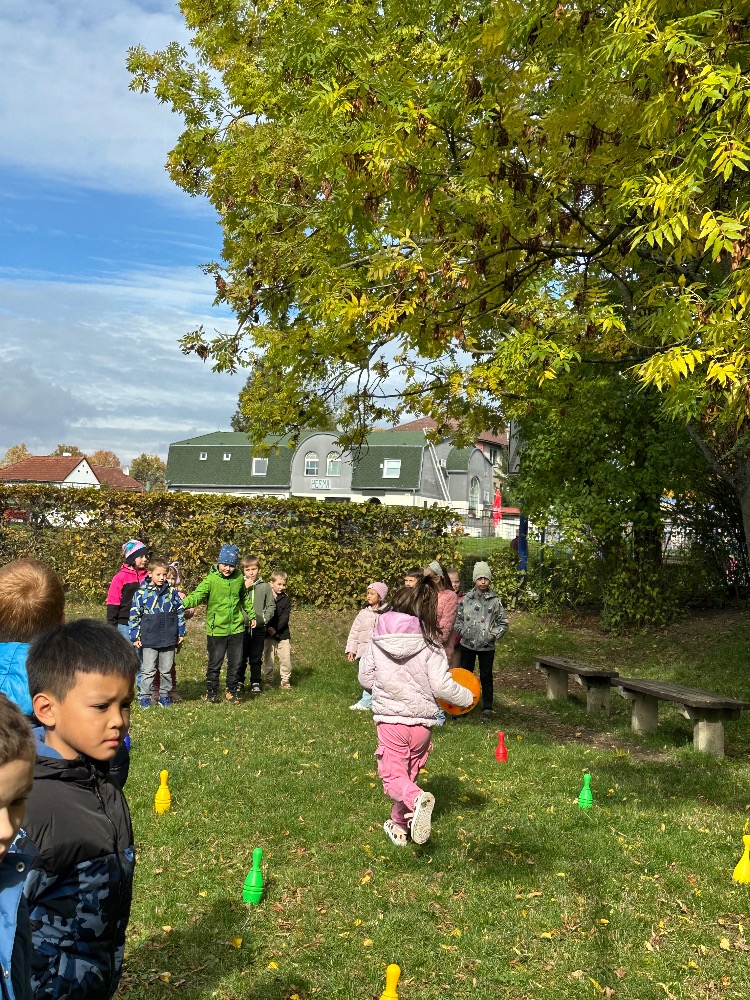 V úterý 14. října uspořádaly paní vychovatelky pro děti ze školní družiny v parku Dýňový běh. Děti soutěžily v družstvech, kde s „dýňovým“ oranžovým balónkem běhaly slalom, skákaly do kruhů a trefovaly se míčkem do oranžového kyblíku. Vše se neslo v duchu podzimu a dýní. Nechyběla ani závěrečná část s přenášením malé dýně do cíle. Akce byla plná pohybu, smíchu a soutěžní atmosféry. Na závěr čekala na všechny odměna v podobě samolepek, sladkostí a drobných figurek. 🎃