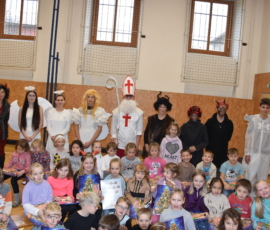 Žáci prvních tříd měli 5.12. velmi obtížný úkol. Dvě zlomyslné čertice uvěznily Mikuláše a děti ho mohly vysvobodit pouze splněním šesti úkolů. Mikuláše ale nakonec z vězení vysvobodily nejen splněné úkoly, ale hlavně básničky a písničky dětí. Pak už se děti mohly radovat ze zasloužené odměny.