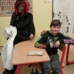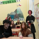Zatím ve škole Mikuláš se svými pomocníky navštívil jednotlivé třídy. Byl velmi potěšen, protože žáci byli připraveni, recitovali básničky jedna radost.