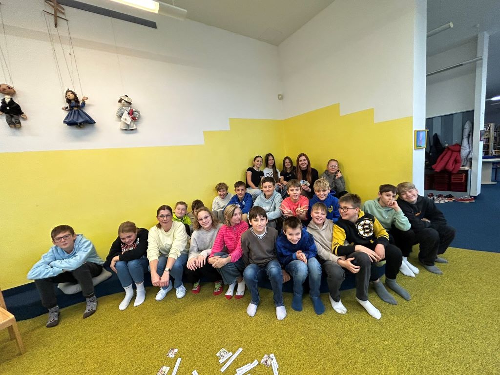 Ve čtvrtek 30. října 2025 navštívila třída 6. A v rámci českého jazyka Městskou knihovnu v Jindřichově Hradci, kde byl pro ni připraven zajímavý vzdělávací program na téma „Jak vzniká kniha“. Žáci rozděleni do 4 skupin pracovali s přidělenými papírky, obrázky a zpracovávali celý proces vzniku knihy od nápadu autora až po hotovou knihu v regálu obchodu, či knihovny. Dozvěděli se, že vznik knihy je dlouhý a zajímavý proces, na kterém se podílí mnoho lidí – nejen autor, ale i ilustrátor, redaktor, korektor, grafik, překladatel, tiskař, nakladatel, knihkupec, knihovník. Seznámili se s pojmy ilustrace, předmluva, doslov, tiráž, náklad, ořízka, sazba.
