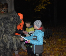 V pátek 31. října se uskutečnila již tradiční pohádková stezka. Děti z 1. stupně se opět v hojném počtu sešly u jakubského kostelíka a s velkou dávkou odvahy vykročily na pohádkovou stezku. I letos zde narazily na roztodivné bytosti, např. na hastrmanku, bludičku, rozpustilé duchy, hejkaly, Bílou paní, Pavoučnici, přerostlou dýni nebo loupežníka. Ti všichni měli pro děti připravené úkoly, jejichž splnění bylo podmínkou proto, aby je propustili ze svých služeb. Všechny děti byly moc šikovné a také odvážné a tak na ně v cíli čekala odměna. Pohádkové bytosti se vrátily s prázdnou zpět do pohádkové říše.