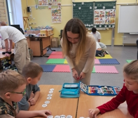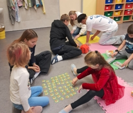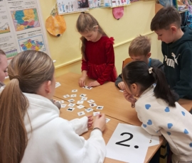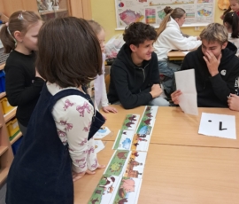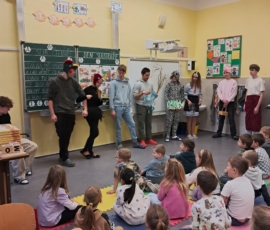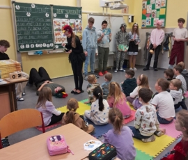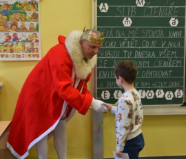 Na úvod dne žáci 9.třídy zahráli pohádku O slepičce a kohoutkovi, pak byla připravená stanoviště, kde děti z 1. A plnily úkoly a za úspěšné vyřešení úkolů získaly klíč ke Slabikáři. Slavnostně splnily slib čtenáře.  Za odměnu obdrželi od krále Slabikáře záložku a sladkou odměnu. Děti ze Slabikáře byly nadšené.