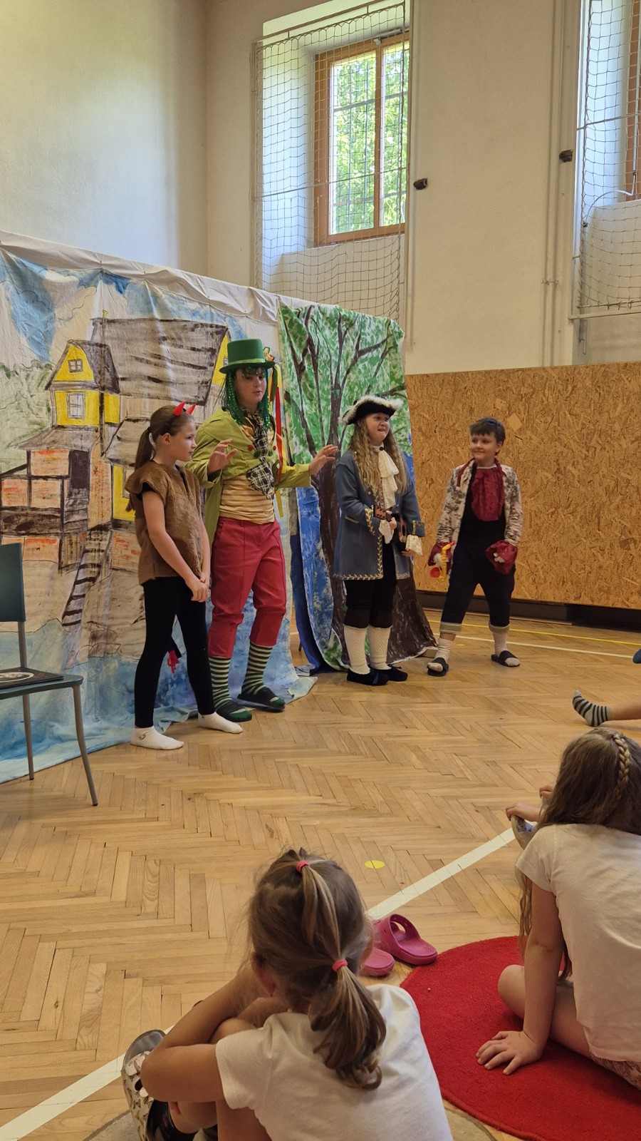 Dramatický kroužek naší školy pod vedením paní učitelky Hovorkové si pro děti na konec školního roku připravil představení Princezna ze mlejna. Představení bylo zábavné a výkony malých herců byly opět na skvělé úrovni. Děkujeme za zpestření posledních dnů školního roku.