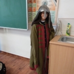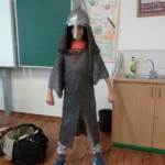 Díky zájmu a ochotě Lindy Kolářové a její rodiny, které bych tímto chtěla poděkovat, jsme si v hodině dějepisu mohli názorně ukázat a někteří i vyzkoušet středověké brnění a zbroj. Žáci si oblékli brnění a překvapilo je, jak muselo být obtížné bojovat na bitevním poli v těžké a neforemné zbroji.