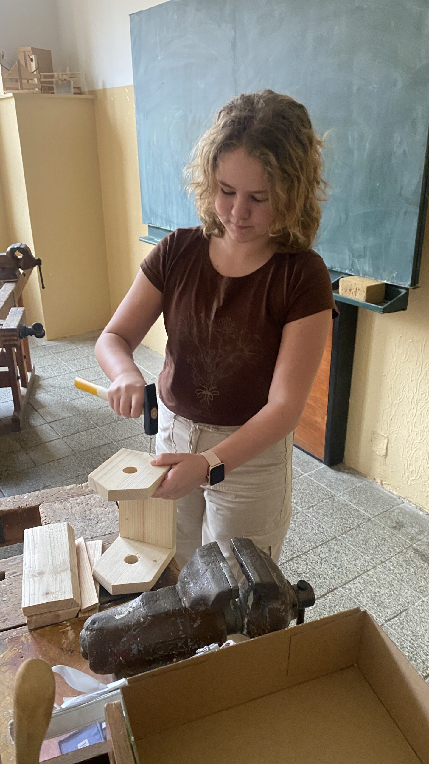 Žákyně šestých ročníků si během hodin pracovních činností vyzkoušely práci se dřevem v naší školní dílně. Učily se správně měřit, brousit smirkovým papírem, řezat, zatloukat hřebíky a celkově opracovávat dřevo. A i když se při zatloukání ohnul nejeden hřebík, děvčata se nenechala odradit – hned se také naučila, jak takový hřebík vytáhnout ven a opravit svoji práci. To vše samozřejmě provázelo spousta smíchu a dobré nálady.