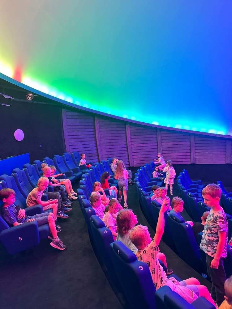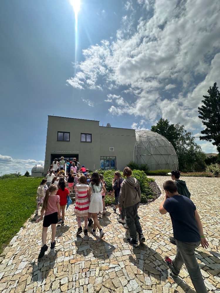 V pátek 6. června si paní vychovatelky připravily pro děti ke Dni dětí výlet do hvězdárny a planetária v Jindřichově Hradci. Cestou jsme si užili pěší procházku krásnou přírodou. V planetáriu jsme zhlédli zajímavé promítání o vesmíru – viděli jsme planety, hvězdy a dozvěděli se spoustu nových informací. Na závěr jsme se podívali na pohádku o tom, jak se stát kosmonautem a jaký je život na vesmírné stanici. Výlet se dětem moc líbil a odnesly si spoustu zážitků.