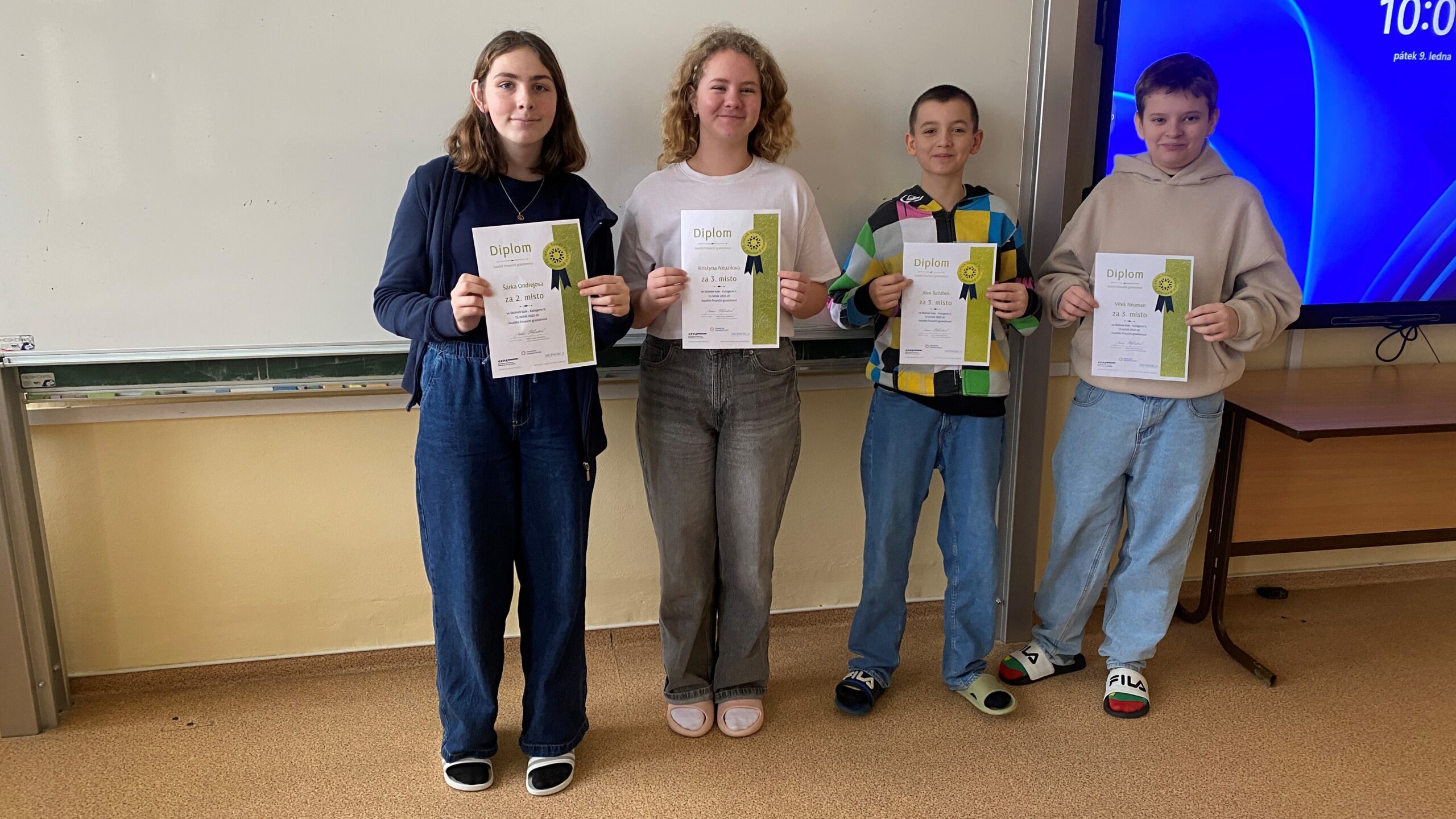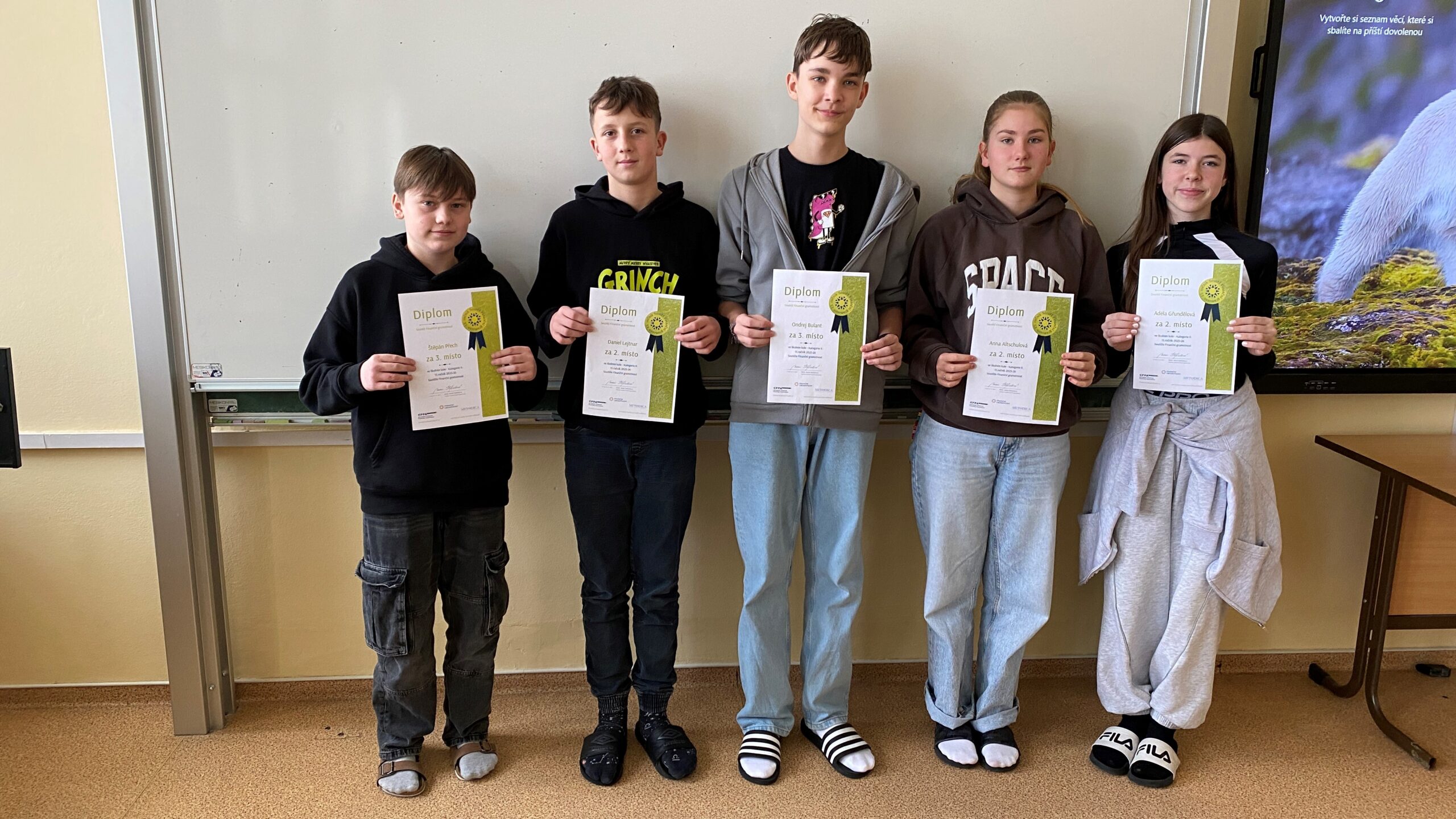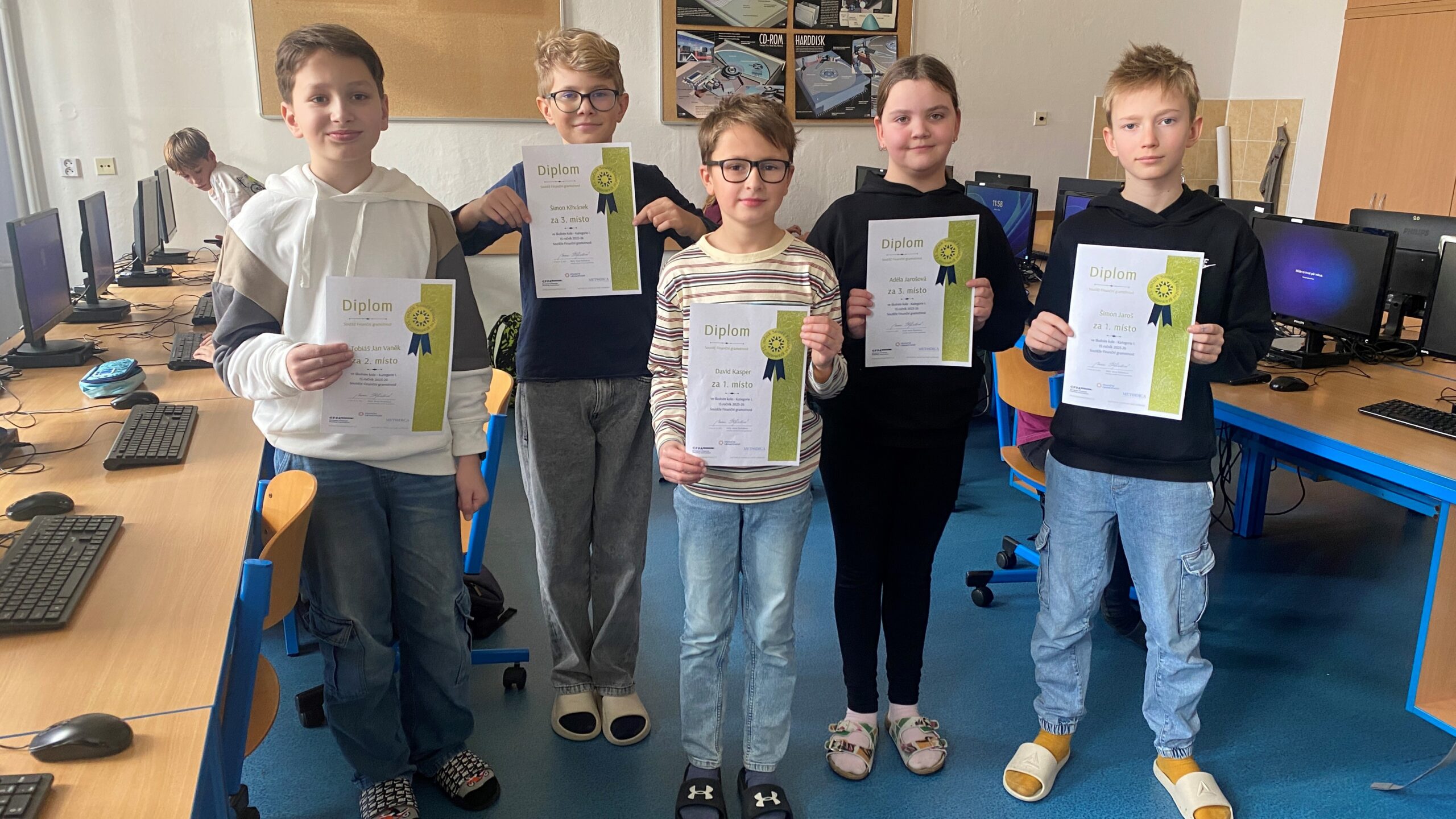 Školní kolo probíhalo individuální formou a nabídlo žákům úlohy zaměřené na reálné situace každodenního života – od sestavování rodinného rozpočtu až po orientaci ve finančních pojmech a rozhodování. Nejúspěšnější řešitelé postoupili do okresního kola, kde již soutěžili v týmech. 1. ZŠ zde reprezentovaly dva týmy složené ze žáků prvního i druhého stupně.