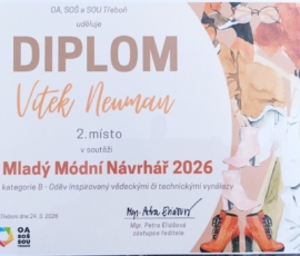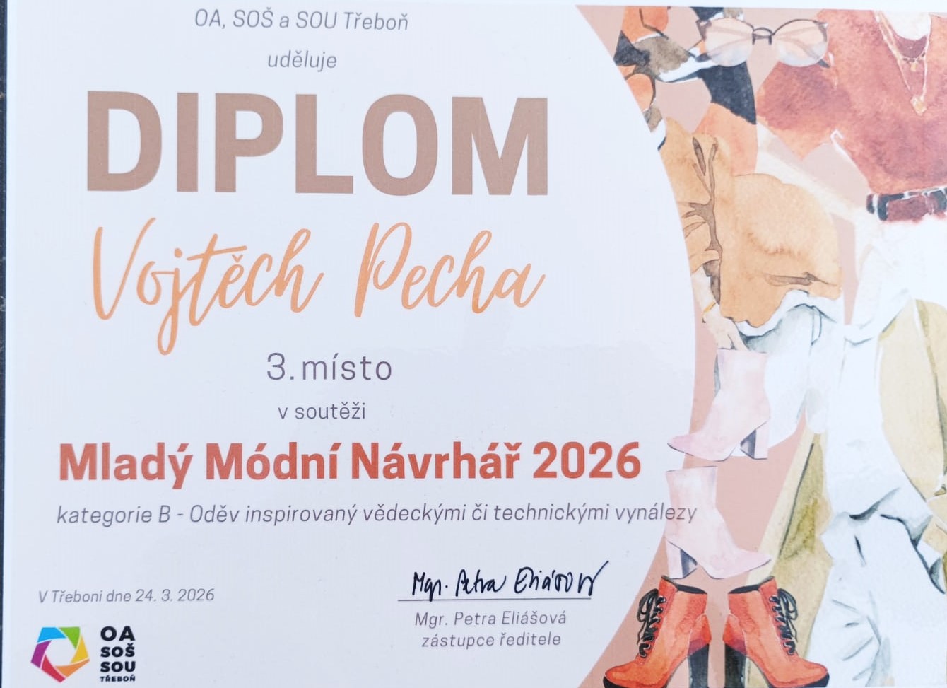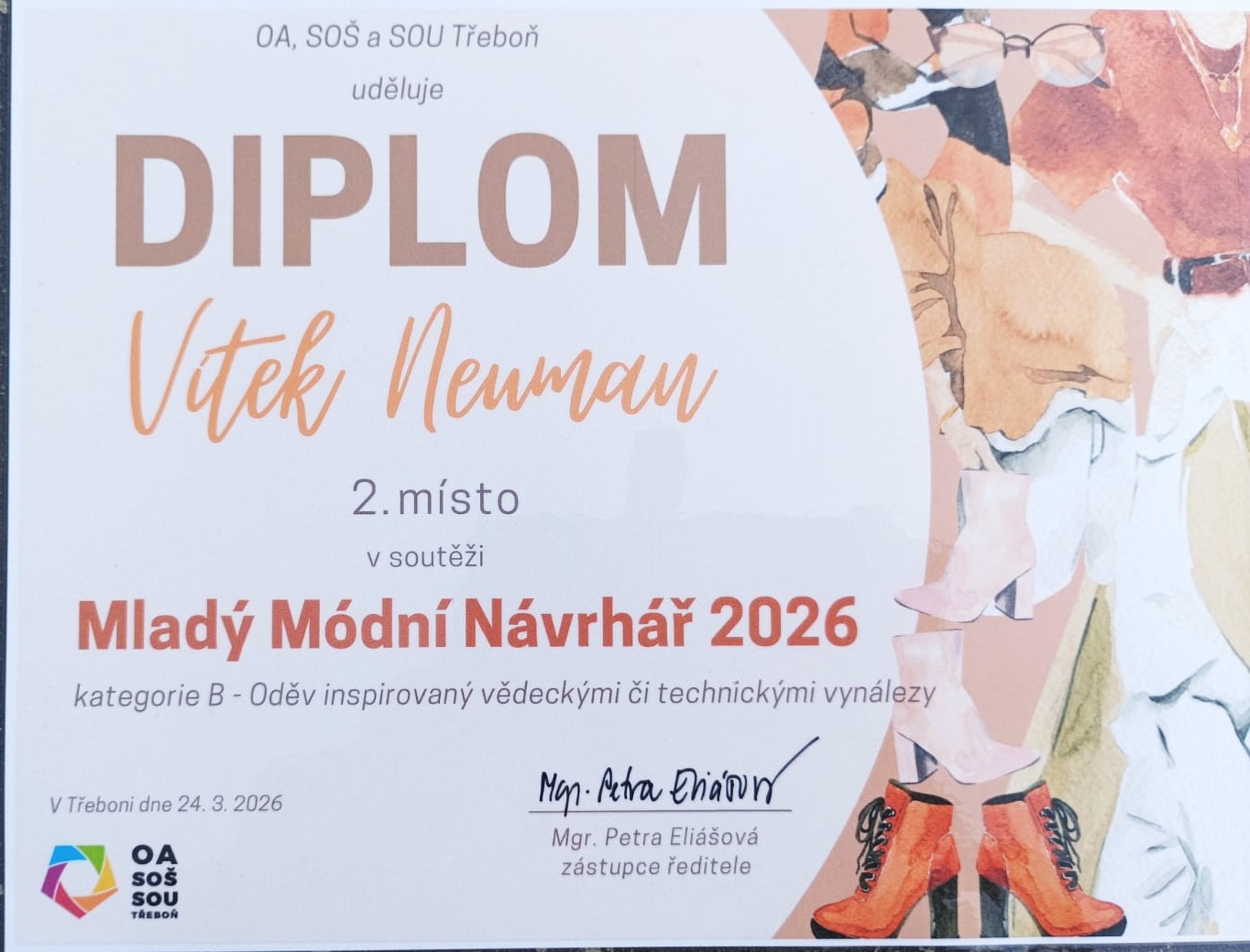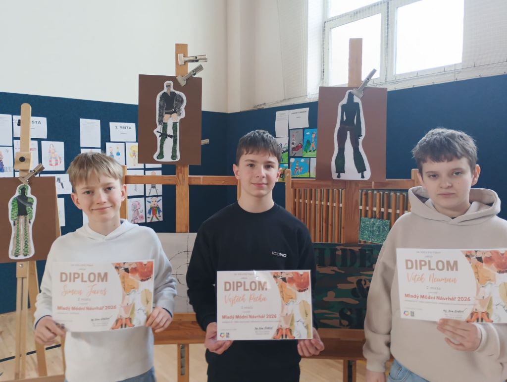 Naši žáci zazářili v celostátní soutěži Mladý módní návrhář 2026! V silné konkurenci vybojovali hned tři medailová umístění: