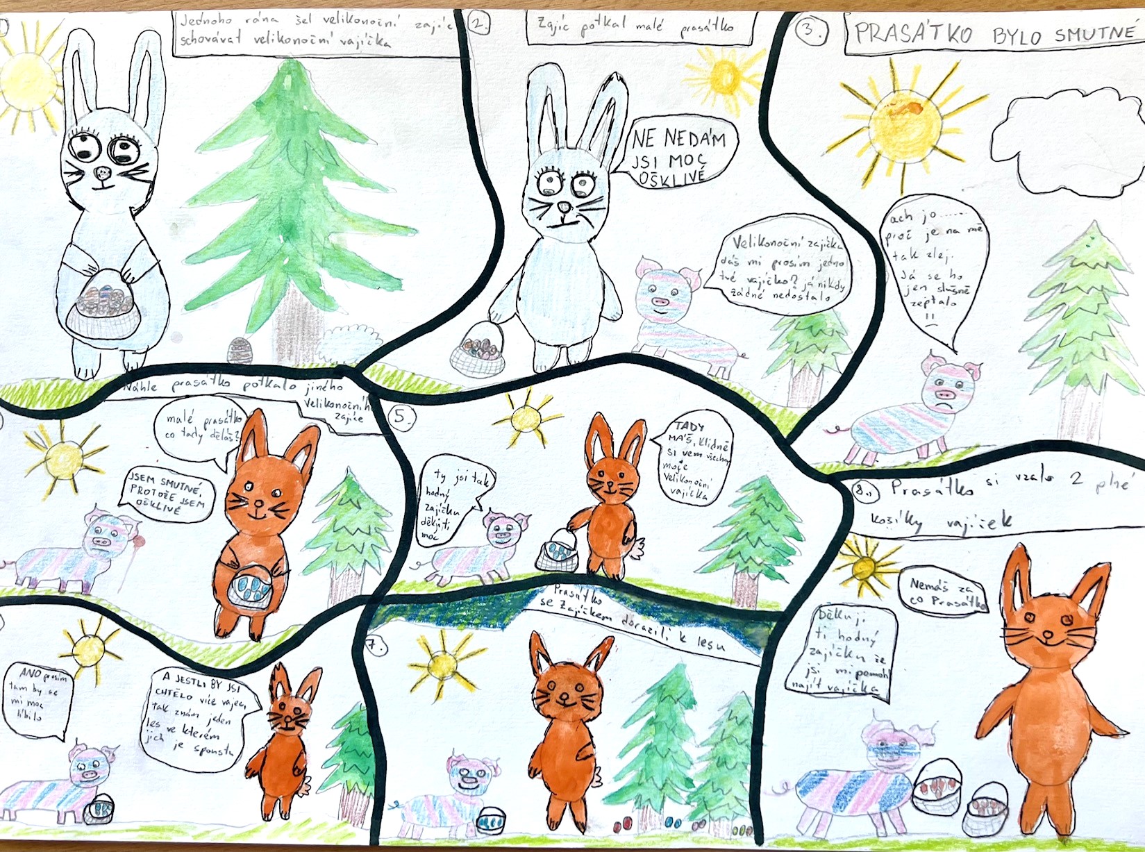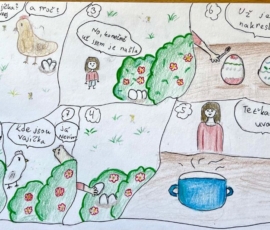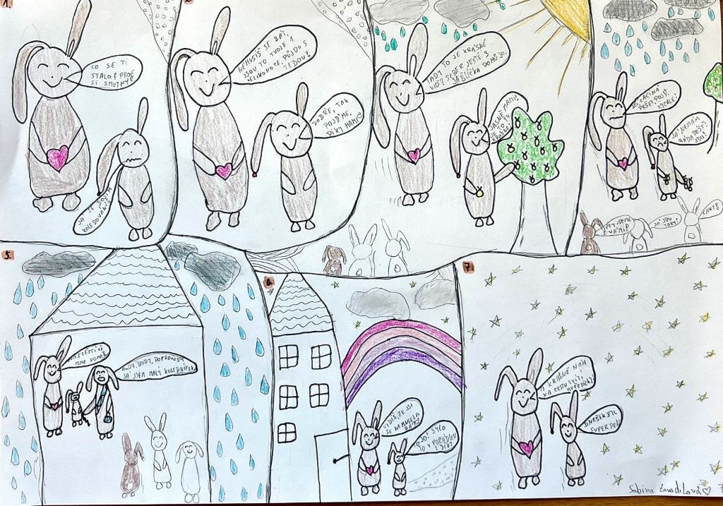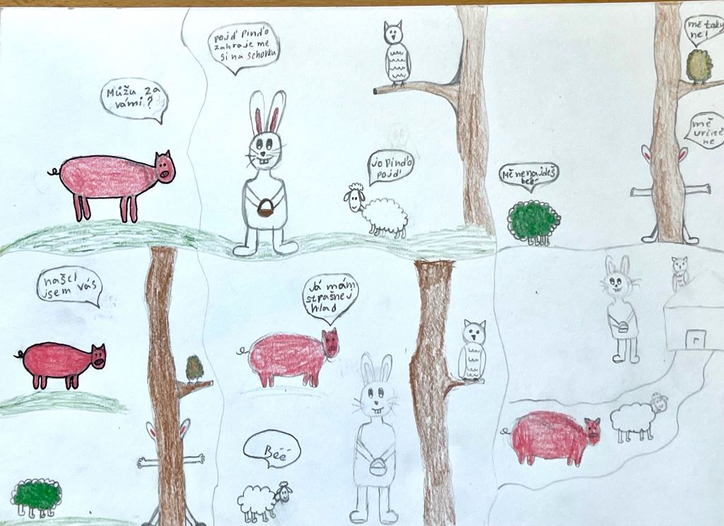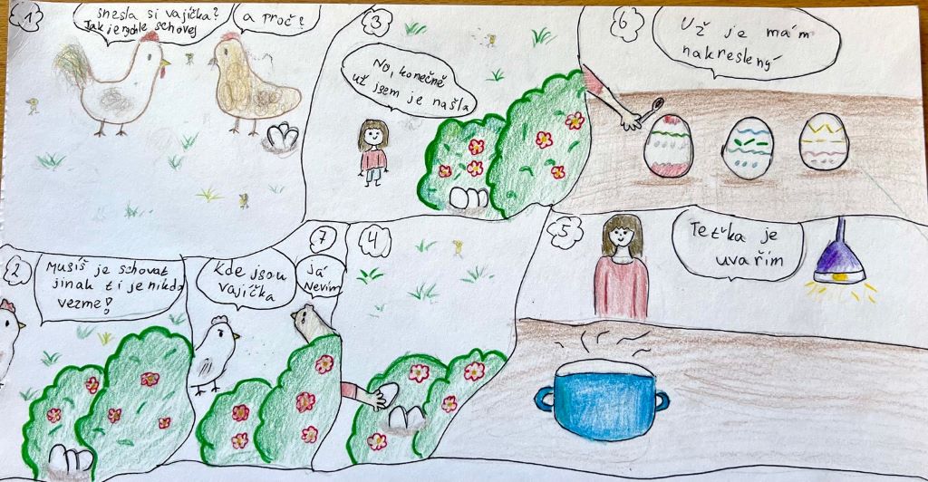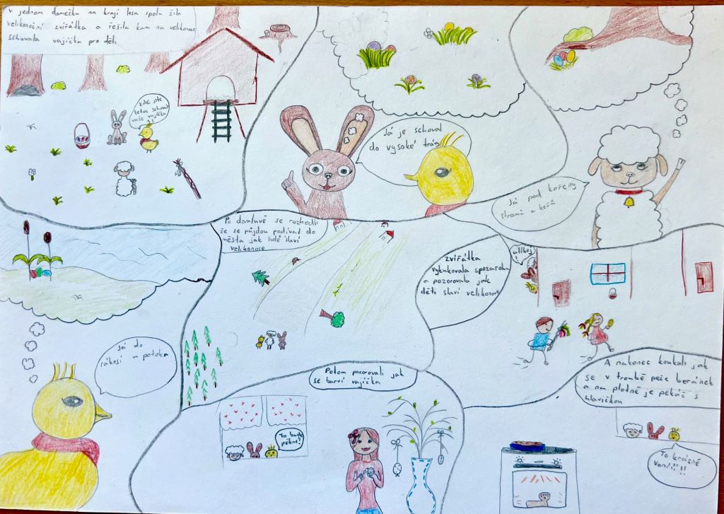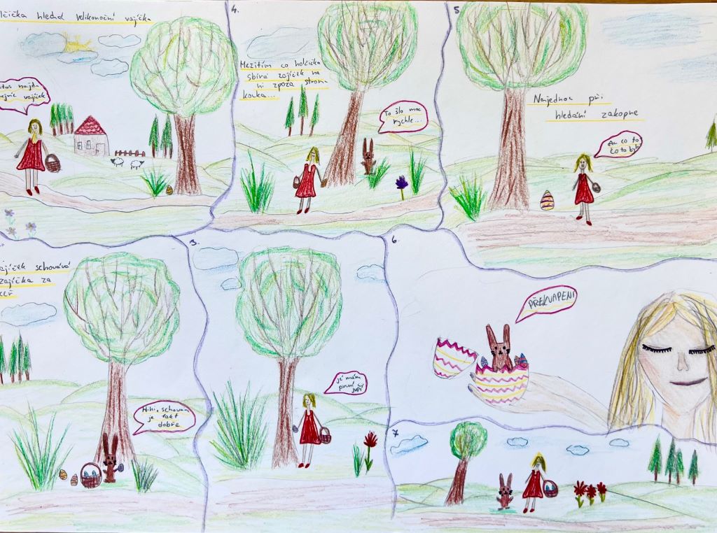 Velikonoce jsou za námi a my Vám chceme ukázat pár aktivit z hodin výtvarné výchovy. Aktuálně žáci 7. ročníků dokončili velikonoční komiksy – kolorovanou kresbu. Další práce jsou ilustrace vlastních příběhů a pohádek. Žáci 5. ročníků tvořili portréty vlastních mazlíčků – kresbou.