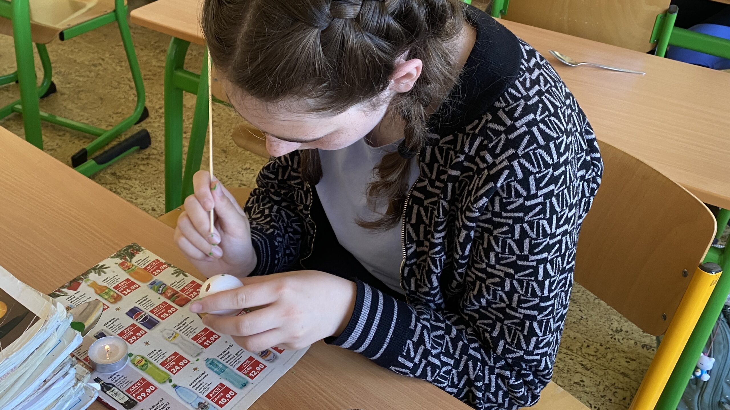 Na 1. základní škole v Jindřichově Hradci jsme si jaro s dívkami zpestřily tvořivou velikonoční dílnou. Tentokrát se do příprav pustila děvčata ze šestých ročníků, která si vyzkoušela nejen zručnost, ale také trpělivost a špetku kreativity.