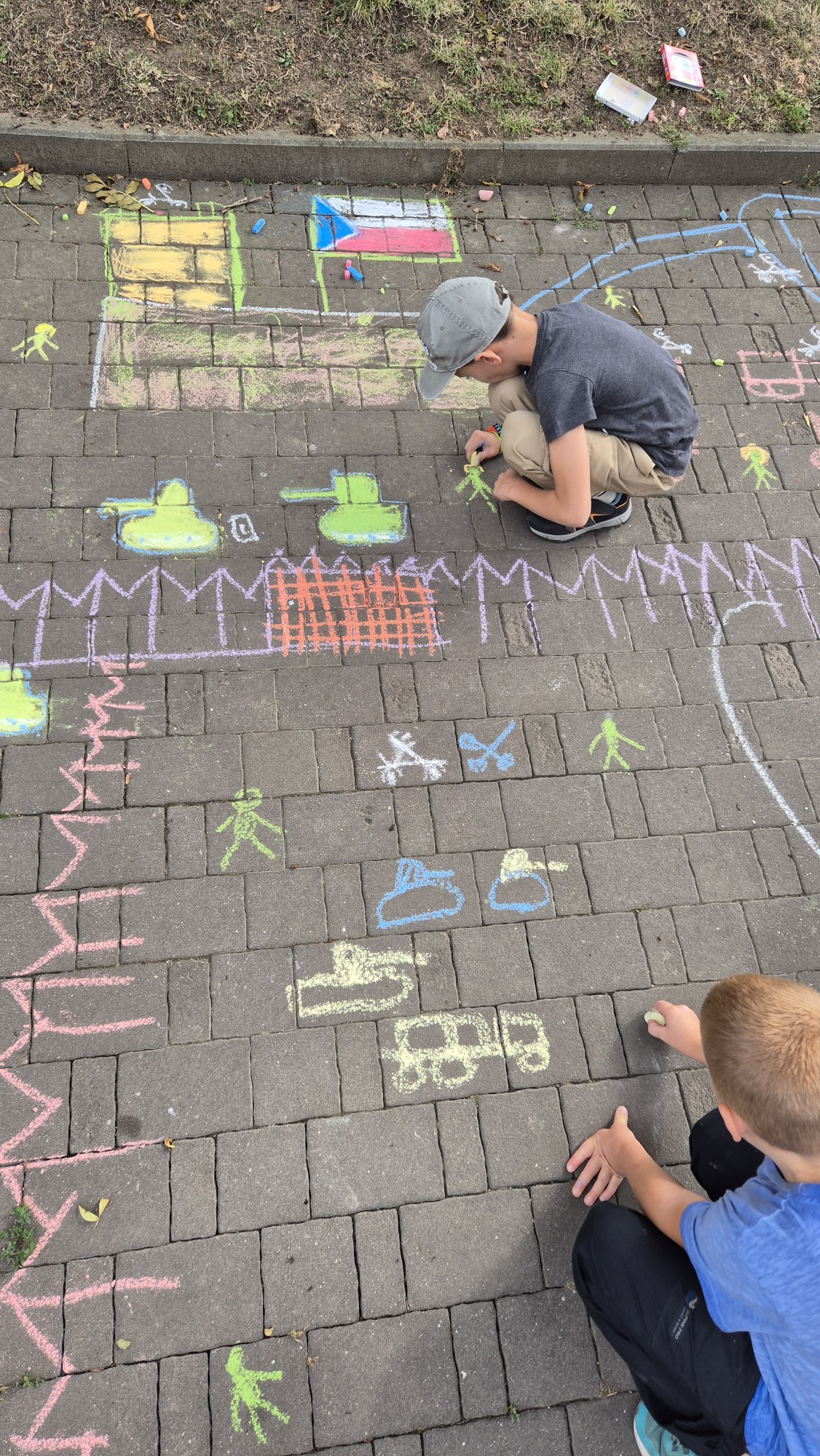 Naši druháčci si užili hodinu výtvarné výchovy v parku. Společně zde křídami na chodník vytvořili krásná díla.Autor: S. Licehamrová By Simona Licehamrová11. 9. 2025Aktuality, Školní akce