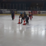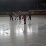 Žáci 1. tříd navštěvují každou středu výuku bruslení pod vedením zkušených trenérů. Tento týden měli třetí hodinu. Skupinka začínajících bruslařů už zkouší bruslit bez kuželů. Skupinka zdatnějších bruslařů se učí náročnější cviky na ledě.